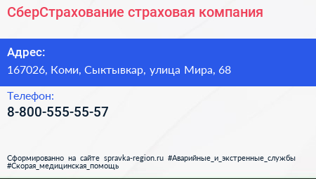 СберСтрахование, страховая компания по адресу 167026, Коми, Сыктывкар, улица Мира, 68 в дальнейшем Организация, размещена в следующих категориях:
