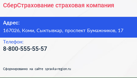 СберСтрахование, страховая компания по адресу 167026, Коми, Сыктывкар, проспект Бумажников, 17 в дальнейшем Организация, размещена в следующих категориях: