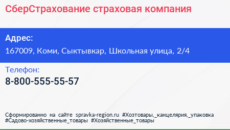 СберСтрахование, страховая компания по адресу 167009, Коми, Сыктывкар, Школьная улица, 2/4 в дальнейшем Организация, размещена в следующих категориях: