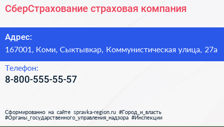 СберСтрахование, страховая компания по адресу 167001, Коми, Сыктывкар, Коммунистическая улица, 27а в дальнейшем Организация, размещена в следующих категориях: