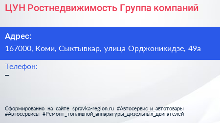 ЦУН Ростнедвижимость, Группа компаний по адресу 167000, Коми, Сыктывкар, улица Орджоникидзе, 49а в дальнейшем Организация, размещена в следующих категориях: