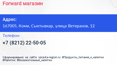 Forward, магазин по адресу 167005, Коми, Сыктывкар, улица Ветеранов, 12 в дальнейшем Организация, размещена в следующих категориях: