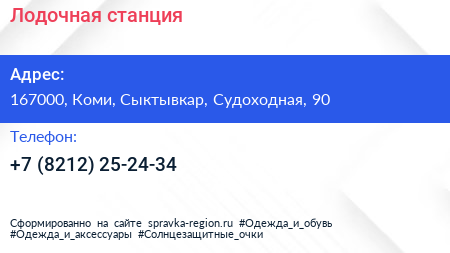 Лодочная станция по адресу 167000, Коми, Сыктывкар, Судоходная, 90 в дальнейшем Организация, размещена в следующих категориях: