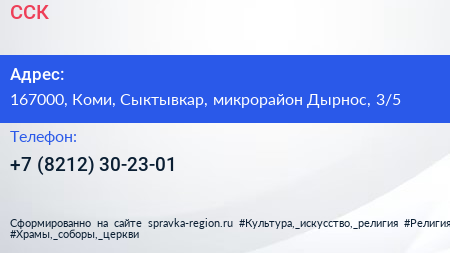 ССК по адресу 167000, Коми, Сыктывкар, микрорайон Дырнос, 3/5 в дальнейшем Организация, размещена в следующих категориях: