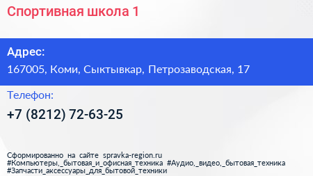 Спортивная школа №1 по адресу 167005, Коми, Сыктывкар, Петрозаводская, 17 в дальнейшем Организация, размещена в следующих категориях: