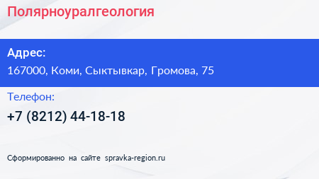 Полярноуралгеология по адресу 167000, Коми, Сыктывкар, Громова, 75 в дальнейшем Организация, размещена в следующих категориях: