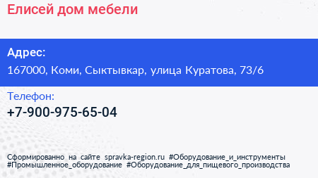 Елисей, дом мебели по адресу 167000, Коми, Сыктывкар, улица Куратова, 73/6 в дальнейшем Организация, размещена в следующих категориях: