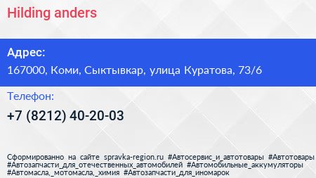 Hilding anders по адресу 167000, Коми, Сыктывкар, улица Куратова, 73/6 в дальнейшем Организация, размещена в следующих категориях: