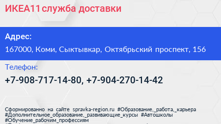 ИКЕА11, служба доставки по адресу 167000, Коми, Сыктывкар, Октябрьский проспект, 156 в дальнейшем Организация, размещена в следующих категориях: