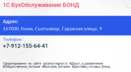 1С: БухОбслуживание. БОНД по адресу 167000, Коми, Сыктывкар, Гаражная улица, 9 в дальнейшем Организация, размещена в следующих категориях: