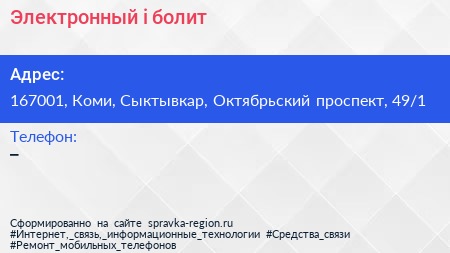 Электронный i-болит по адресу 167001, Коми, Сыктывкар, Октябрьский проспект, 49/1 в дальнейшем Организация, размещена в следующих категориях: