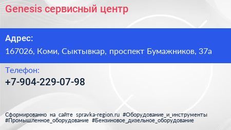 Genesis, сервисный центр по адресу 167026, Коми, Сыктывкар, проспект Бумажников, 37а в дальнейшем Организация, размещена в следующих категориях: