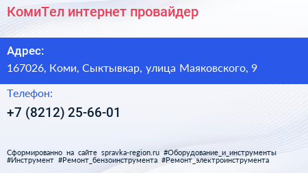 КомиТел, интернет-провайдер по адресу 167026, Коми, Сыктывкар, улица Маяковского, 9 в дальнейшем Организация, размещена в следующих категориях: