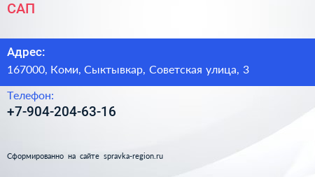 САП по адресу 167000, Коми, Сыктывкар, Советская улица, 3 в дальнейшем Организация, размещена в следующих категориях:
