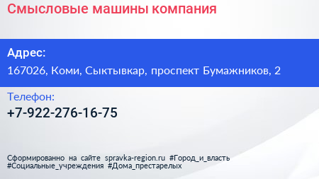 Смысловые машины, компания по адресу 167026, Коми, Сыктывкар, проспект Бумажников, 2 в дальнейшем Организация, размещена в следующих категориях: