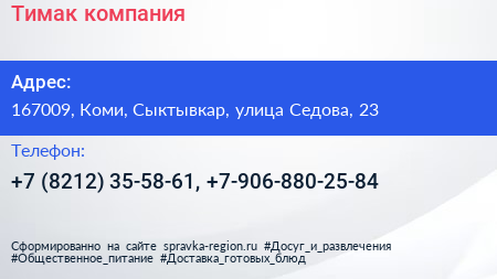 Тимак, компания по адресу 167009, Коми, Сыктывкар, улица Седова, 23 в дальнейшем Организация, размещена в следующих категориях: