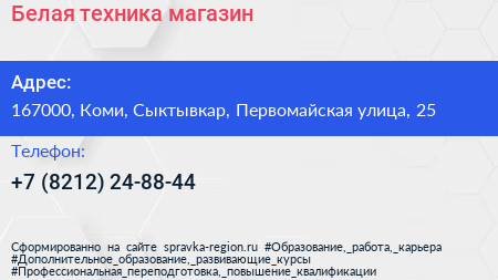 Белая техника, магазин по адресу 167000, Коми, Сыктывкар, Первомайская улица, 25 в дальнейшем Организация, размещена в следующих категориях: