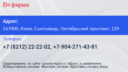 ЁН, фирма по адресу 167000, Коми, Сыктывкар, Октябрьский проспект, 129 в дальнейшем Организация, размещена в следующих категориях: