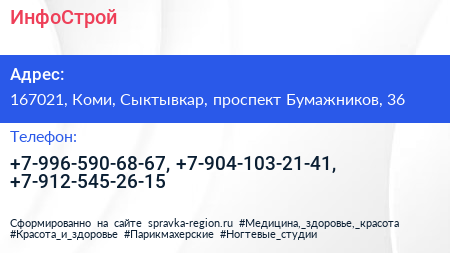ИнфоСтрой по адресу 167021, Коми, Сыктывкар, проспект Бумажников, 36 в дальнейшем Организация, размещена в следующих категориях: