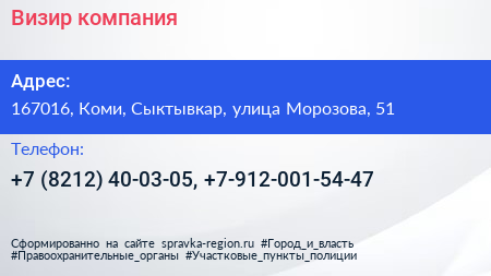 Визир, компания по адресу 167016, Коми, Сыктывкар, улица Морозова, 51 в дальнейшем Организация, размещена в следующих категориях: