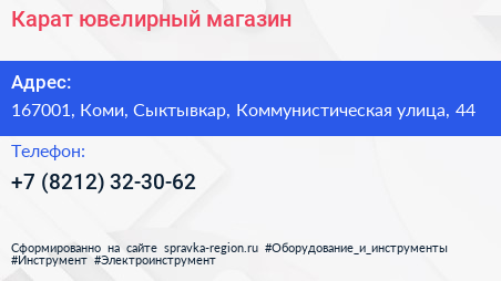 Карат, ювелирный магазин по адресу 167001, Коми, Сыктывкар, Коммунистическая улица, 44 в дальнейшем Организация, размещена в следующих категориях: