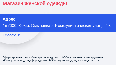 Магазин женской одежды по адресу 167000, Коми, Сыктывкар, Коммунистическая улица, 18 в дальнейшем Организация, размещена в следующих категориях: