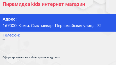 Пирамидка.kids, интернет-магазин по адресу 167000, Коми, Сыктывкар, Первомайская улица, 72 в дальнейшем Организация, размещена в следующих категориях: