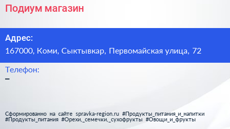 Подиум, магазин по адресу 167000, Коми, Сыктывкар, Первомайская улица, 72 в дальнейшем Организация, размещена в следующих категориях: