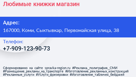 Любимые книжки, магазин по адресу 167000, Коми, Сыктывкар, Первомайская улица, 38 в дальнейшем Организация, размещена в следующих категориях: