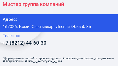 Мистер, группа компаний по адресу 167026, Коми, Сыктывкар, Лесная (Эжва), 36 в дальнейшем Организация, размещена в следующих категориях: