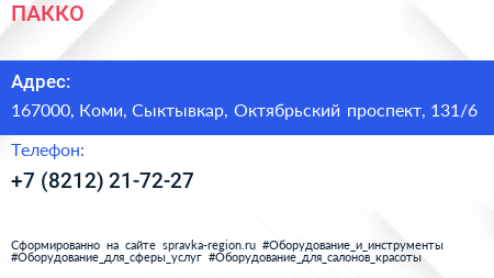 ПАККО по адресу 167000, Коми, Сыктывкар, Октябрьский проспект, 131/6 в дальнейшем Организация, размещена в следующих категориях: