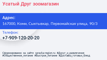 Усатый Друг, зоомагазин по адресу 167000, Коми, Сыктывкар, Первомайская улица, 90/3 в дальнейшем Организация, размещена в следующих категориях: