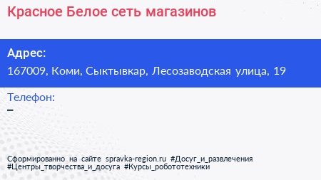 Красное & Белое, сеть магазинов по адресу 167009, Коми, Сыктывкар, Лесозаводская улица, 19 в дальнейшем Организация, размещена в следующих категориях: