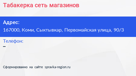 Табакерка, сеть магазинов по адресу 167000, Коми, Сыктывкар, Первомайская улица, 90/3 в дальнейшем Организация, размещена в следующих категориях: