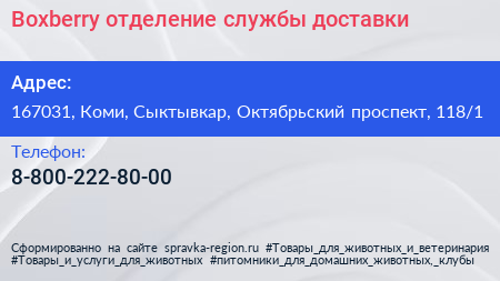 Boxberry, отделение службы доставки по адресу 167031, Коми, Сыктывкар, Октябрьский проспект, 118/1 в дальнейшем Организация, размещена в следующих категориях: