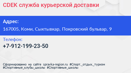CDEK, служба курьерской доставки по адресу 167005, Коми, Сыктывкар, Покровский бульвар, 9 в дальнейшем Организация, размещена в следующих категориях: