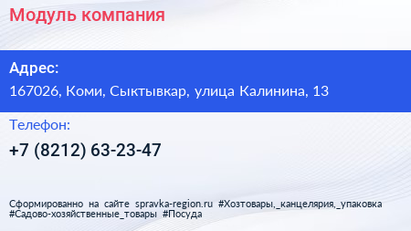 Модуль, компания по адресу 167026, Коми, Сыктывкар, улица Калинина, 13 в дальнейшем Организация, размещена в следующих категориях: