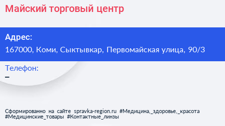 Майский, торговый центр по адресу 167000, Коми, Сыктывкар, Первомайская улица, 90/3 в дальнейшем Организация, размещена в следующих категориях:
