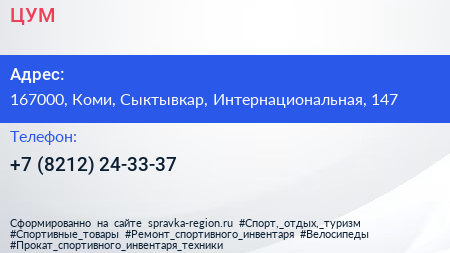 ЦУМ по адресу 167000, Коми, Сыктывкар, Интернациональная, 147 в дальнейшем Организация, размещена в следующих категориях: