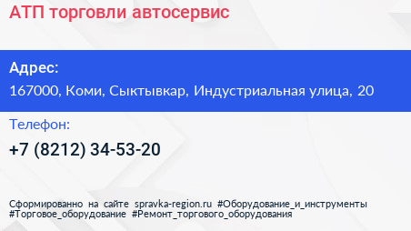 АТП торговли, автосервис по адресу 167000, Коми, Сыктывкар, Индустриальная улица, 20 в дальнейшем Организация, размещена в следующих категориях: