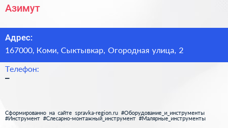 Азимут по адресу 167000, Коми, Сыктывкар, Огородная улица, 2 в дальнейшем Организация, размещена в следующих категориях: