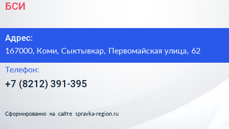 БСИ по адресу 167000, Коми, Сыктывкар, Первомайская улица, 62 в дальнейшем Организация, размещена в следующих категориях: