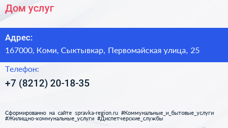 Дом услуг по адресу 167000, Коми, Сыктывкар, Первомайская улица, 25 в дальнейшем Организация, размещена в следующих категориях: