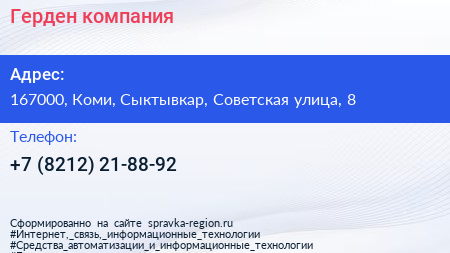 Герден, компания по адресу 167000, Коми, Сыктывкар, Советская улица, 8 в дальнейшем Организация, размещена в следующих категориях: