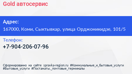 Gold, автосервис по адресу 167000, Коми, Сыктывкар, улица Орджоникидзе, 101/5 в дальнейшем Организация, размещена в следующих категориях: