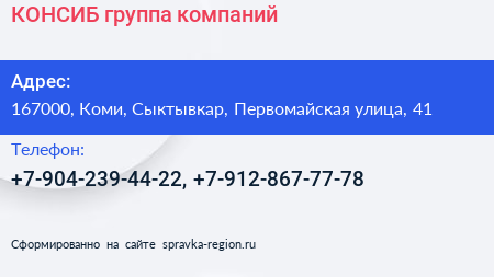 КОНСИБ, группа компаний по адресу 167000, Коми, Сыктывкар, Первомайская улица, 41 в дальнейшем Организация, размещена в следующих категориях: