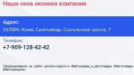 Наши окна, оконная компания по адресу 167004, Коми, Сыктывкар, Сысольское шоссе, 7 в дальнейшем Организация, размещена в следующих категориях: