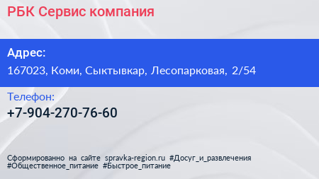 РБК-Сервис, компания по адресу 167023, Коми, Сыктывкар, Лесопарковая, 2/54 в дальнейшем Организация, размещена в следующих категориях: