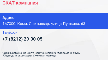 СКАТ, компания по адресу 167000, Коми, Сыктывкар, улица Пушкина, 63 в дальнейшем Организация, размещена в следующих категориях:
