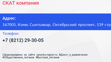 СКАТ, компания по адресу 167005, Коми, Сыктывкар, Октябрьский проспект, 139 стр в дальнейшем Организация, размещена в следующих категориях: